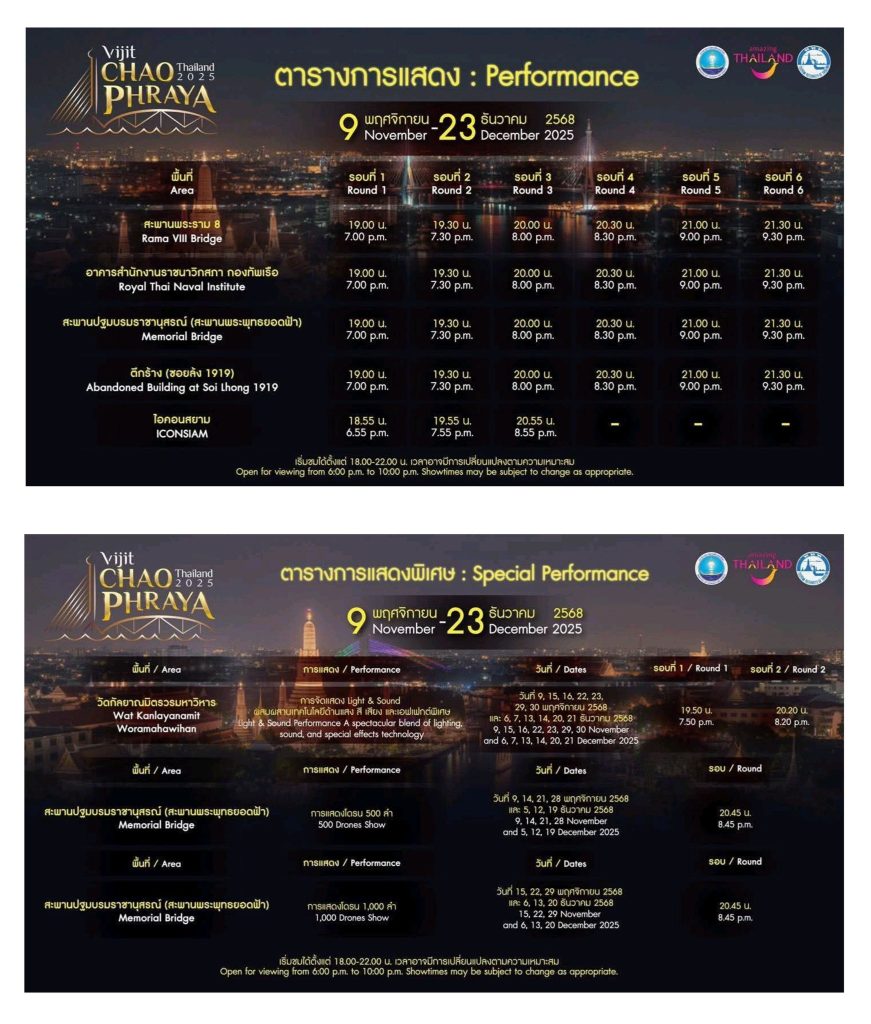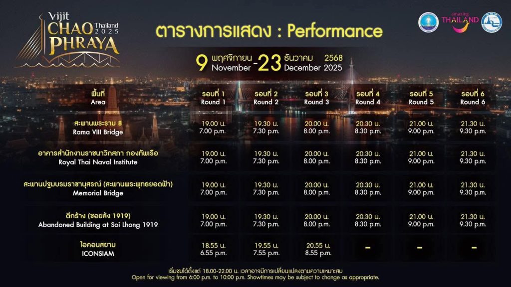 โดยปีนี้ปรับรูปแบบใหม่ เพื่อความเหมาะสม — งดจุดพลุ แต่จัด การแสดงโดรนสุดอลังการ บินเหนือแม่น้ำเจ้าพระยาแทน