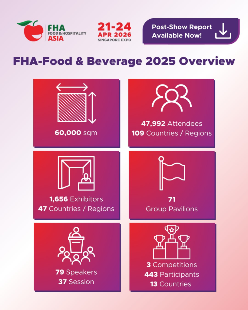 จัดทัวร์ไปดูงาน FHA Singapore 2026 หรือชื่อเต็มๆ Food & Hospitality Asia 2026 คือมหกรรมแสดงสินค้าและนิทรรศการทางการค้าที่ยิ่งใหญ่และครอบคลุมที่สุดในเอเชีย สำหรับอุตสาหกรรมอาหาร เครื่องดื่ม และการบริการ (Food & Hospitality) งานนี้ถือเป็นการรวมตัวกันของ 2 งานยักษ์ใหญ่อย่าง FHA-Food & Beverage และ FHA-HoReCa เข้ามาไว้ในงานเดียวกัน ทำให้กลายเป็นงานระดับ “Mega Event” ที่รวบรวมทุกอย่างเกี่ยวกับอุตสาหกรรมอาหารและโรงแรมมาไว้ในที่เดียวครับ