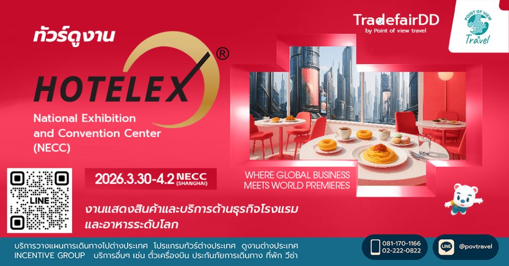 ดูงาน HOTELEX Shanghai 2026 คือ งานแสดงสินค้าและการประชุมนานาชาติที่ใหญ่ที่สุดในเอเชียสำหรับอุตสาหกรรมโรงแรมและร้านอาหาร (HoReCa) งานนี้เป็นเสมือน “ศูนย์รวม” ของผู้ประกอบการ ซัพพลายเออร์ และผู้เชี่ยวชาญจากทั่วโลกที่ต้องการอัปเดตเทรนด์ใหม่ๆ และหาคู่ค้าทางธุรกิจในด้านบริการและการท่องเที่ยว วันที่จัดงานระหว่างวันที่ 30 มีนาคม – 2 เมษายน 2026 สถานที่ National Exhibition and Convention Center (NECC) ย่านหงเฉียว เมืองเซี่ยงไฮ้ ประเทศจีน งานนี้ ครอบคลุมพื้นที่กว่า 400,000 ตารางเมตร และมีผู้จัดแสดงสินค้ามากกว่า 3,500 ราย