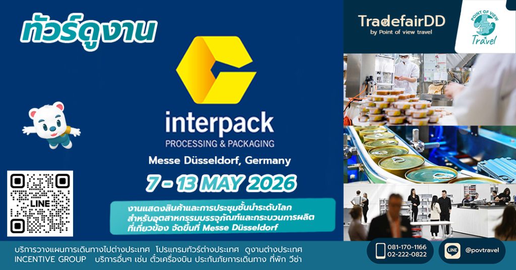 จัดทัวร์ไป งาน interpack 2026 งานนี้ครอบคลุมตั้งแต่ต้นน้ำจนถึงปลายน้ำของอุตสาหกรรมบรรจุภัณฑ์ (Packaging & Processing) ซึ่งจะถูกจัดขึ้น ใน ทุกๆ 3 ปี โดยงานครั้งล่าสุดจัดขึ้นในปี 2023 งานนี้เป็นงานชั้นนำระดับโลก โดยจะถูกจัดขึ้นที่