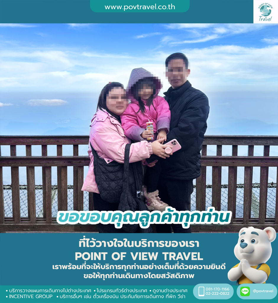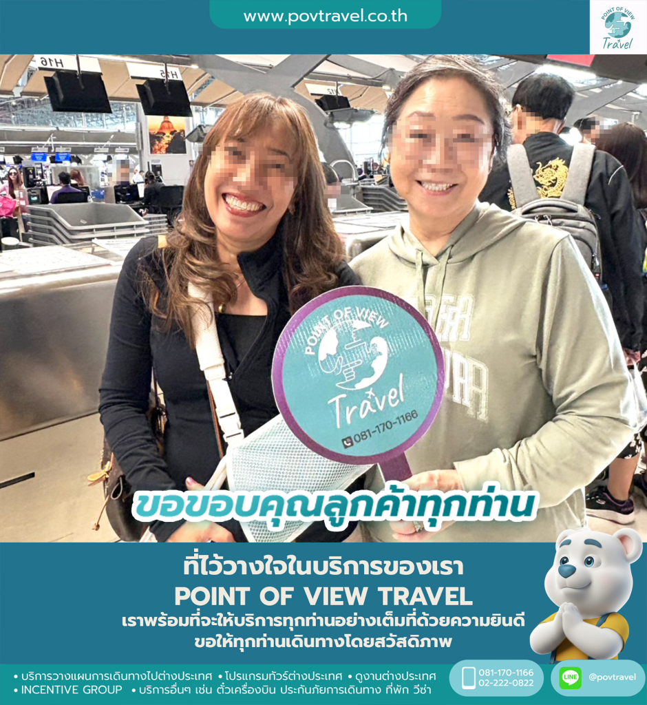 สนใจสอบถามรายละเอียดจัดไปแบบทัวร์ไปส่วนตัวแบบ 10 ท่านขึ้นไป เดินทางเองจากไทย ทำราคาแบบรวมตั๋ว , ทำวีซ่า (ถ้ามี) , ที่พัก , บัตรเข้างาน , รถรับ – ส่ง หรือ ไปจอยทัวร์ หรือ ไปส่วนตัวจัดได้ตามงบประมาณสอบถามก่อนได้ คลิกไลน์แอดที่นี่ โทร 081-170-1166 หรือ เมล์ INFO@POVTRAVEL.CO.TH เข้าเว็บ Point of View Trave